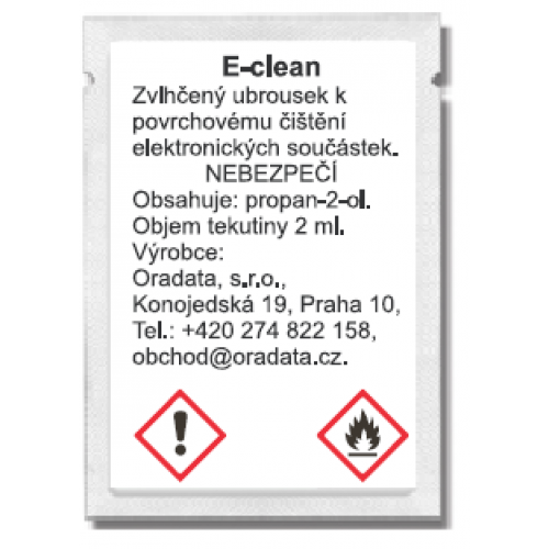 Zvlhčený ubrousek napuštěný 70 % Isopropanolem, určený k povrchovému čištění elektronických součástek. Upozornění: Isopropanol v koncentraci 70 % má obecně vysoký dezinfekční účinek, tento výrobek však není registrován jako biocidní přípravek a jeho dezinfekční schopnosti nebyly laboratorně zkoušeny.
